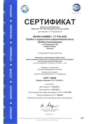 Производственные предприятия, на которых производятся фильтры бренда FILTRON, обеспечивают строгое выполнение требований стандартов ISO 14001:2015 и IATF TF 16949. Процедуры качества охватывают весь производственный процесс: начиная с выбора материалов, полупродуктов, и заканчивая изготовлением готового продукта и передачи его на склад.