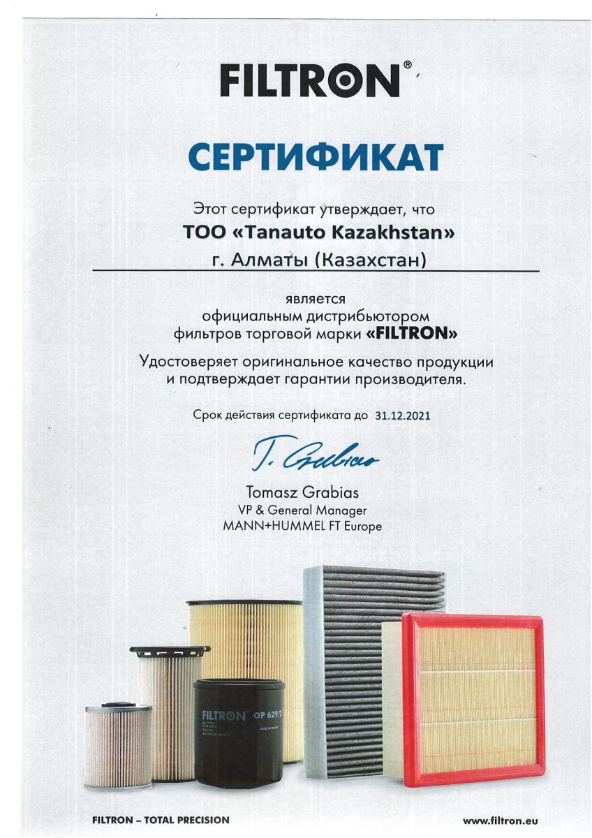 Наша компетентность и стандарты качества гарантируют, что каждый фильтр FILTRON обеспечивает надежную защиту в течение всего периода рекомендуемого использования.Тысячи механиков по всей Европе выбирают фильтры FILTRON и ценят решения, облегчающие их работу.Мы производим контроль как качества материалов, используемых для производства, так и прочности и эффективности готовых продуктов. В современной лаборатории нашей компании мы используем для этих целей свыше 60 методов исследования, которые соответствуют международным стандартам.FILTRON это бренд фильтров компании MANN+HUMMEL, которая является ведущим поставщиком оригинальных фильтров для крупнейших автомобильных концернов. MANN+HUMMEL является мировым лидером в области технологии фильтрации.Качество и надежность фильтров FILTRON - это заслуга современных и передовых технологий, используемых на заводах нашей компании. За производство фильтров бренда FILTRON отвечает свыше 2000 специалистов.