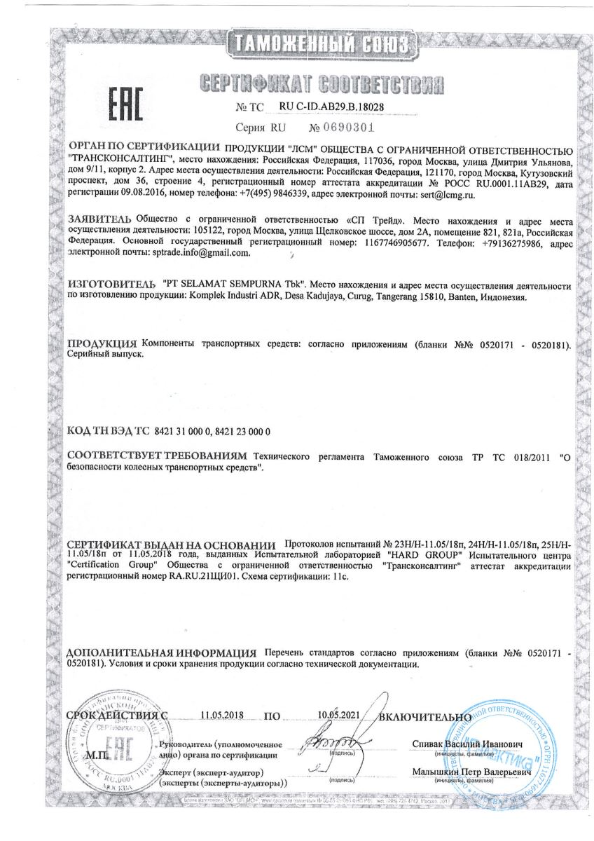 - полный ассортимент фильтров на легковой и легкий коммерческий транспорт;