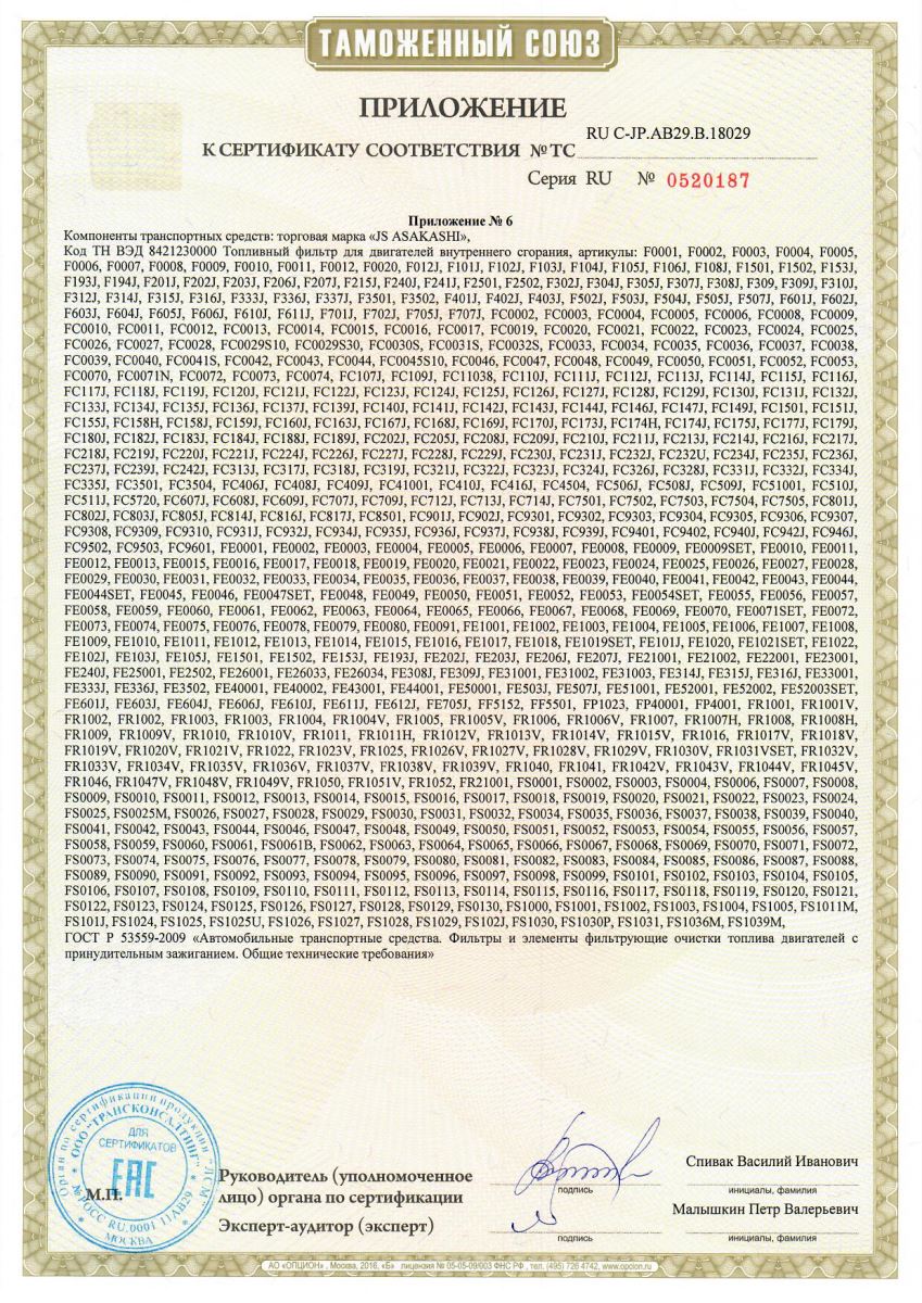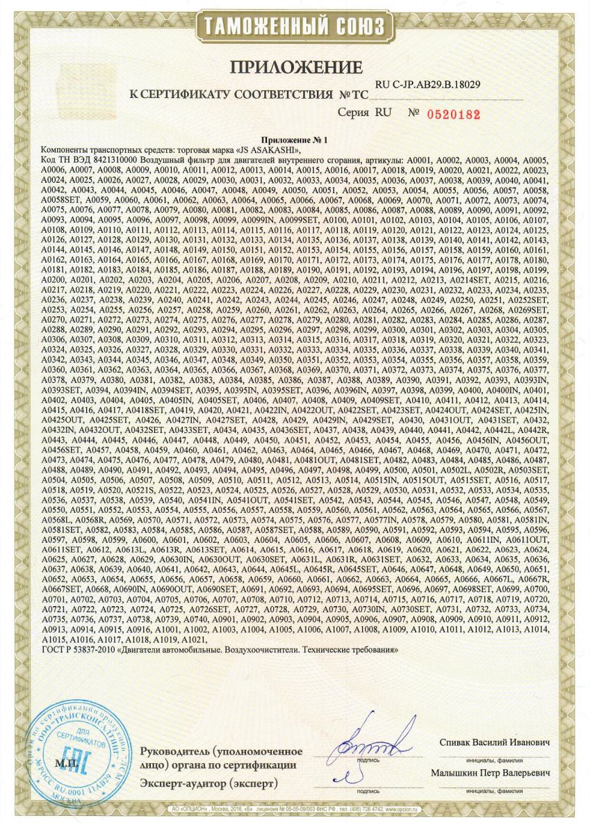 JS ASAKASHI Filtration Product включает полный спектр фильтрующих продуктов: воздушные, топливные, масляные фильтры, фильтры салона и трансмиссии (АКПП).